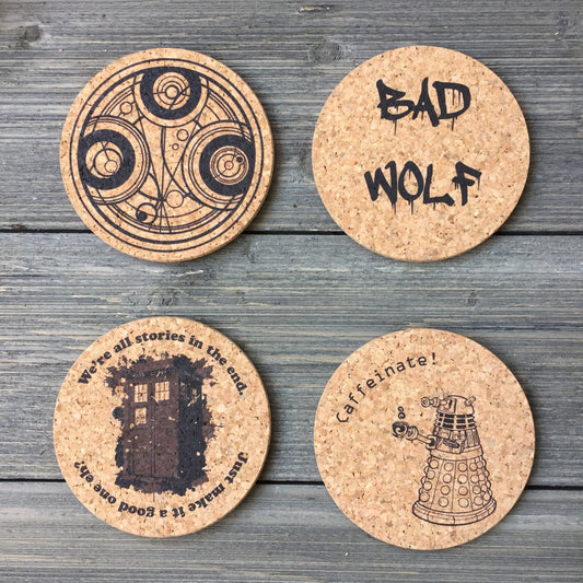 Dr Who Themed Cork Coaster Set of 4 (Set A)